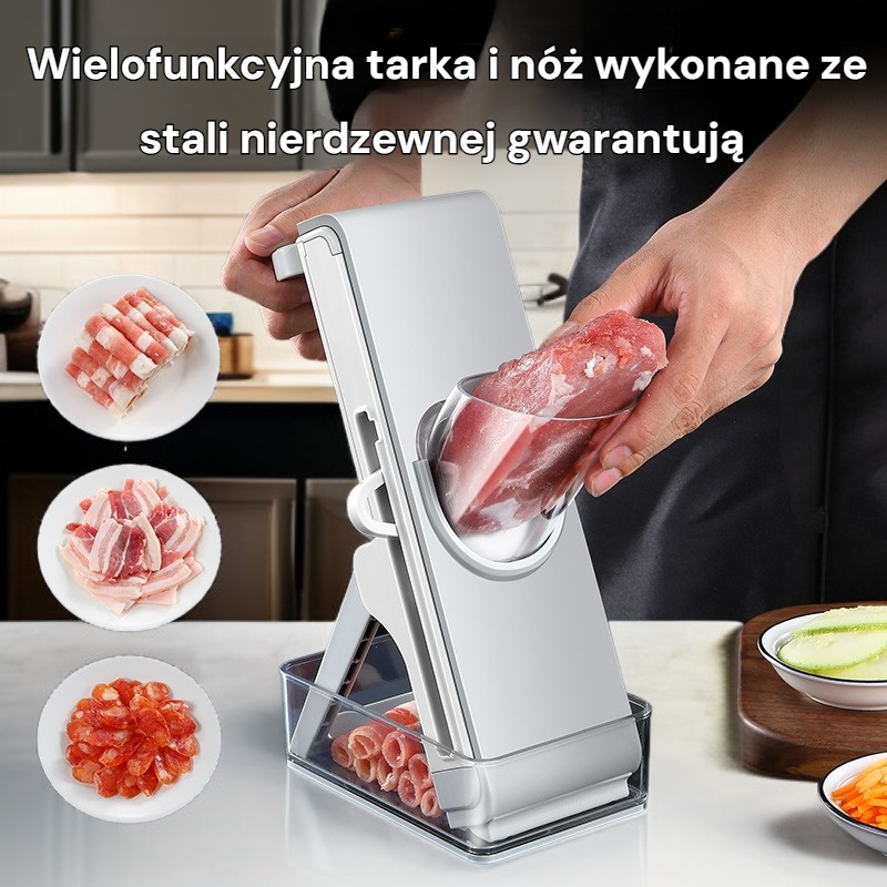 ● Wielofunkcyjna tarka i nóż wykonane ze stali nierdzewnej gwarantują trwałość oraz odporność na korozję, co zapewnia długotrwałe użytkowanie w każdej kuchni.