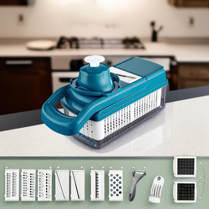 Kolor: Szary krajalnica do warzyw (trzy ostrza), niebieska krajalnica do warzyw (trzy ostrza), zielona krajalnica do warzyw