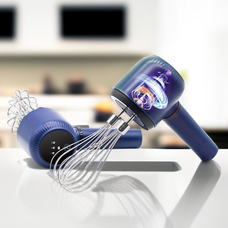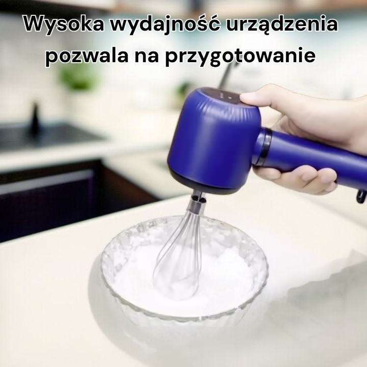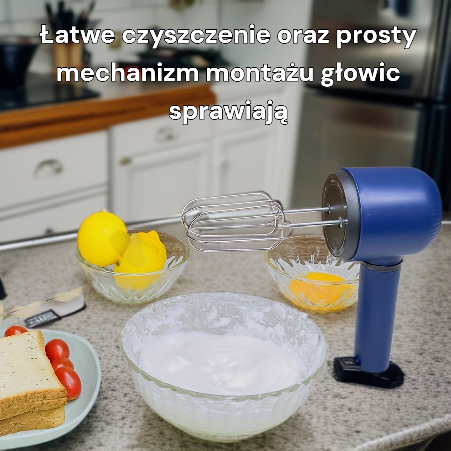 ● Bezprzewodowy elektryczny mikser ręczny z podwójną głowicą pozwala na szybkie i równomierne ubijanie jajek oraz innych składników bez ograniczeń kabli.