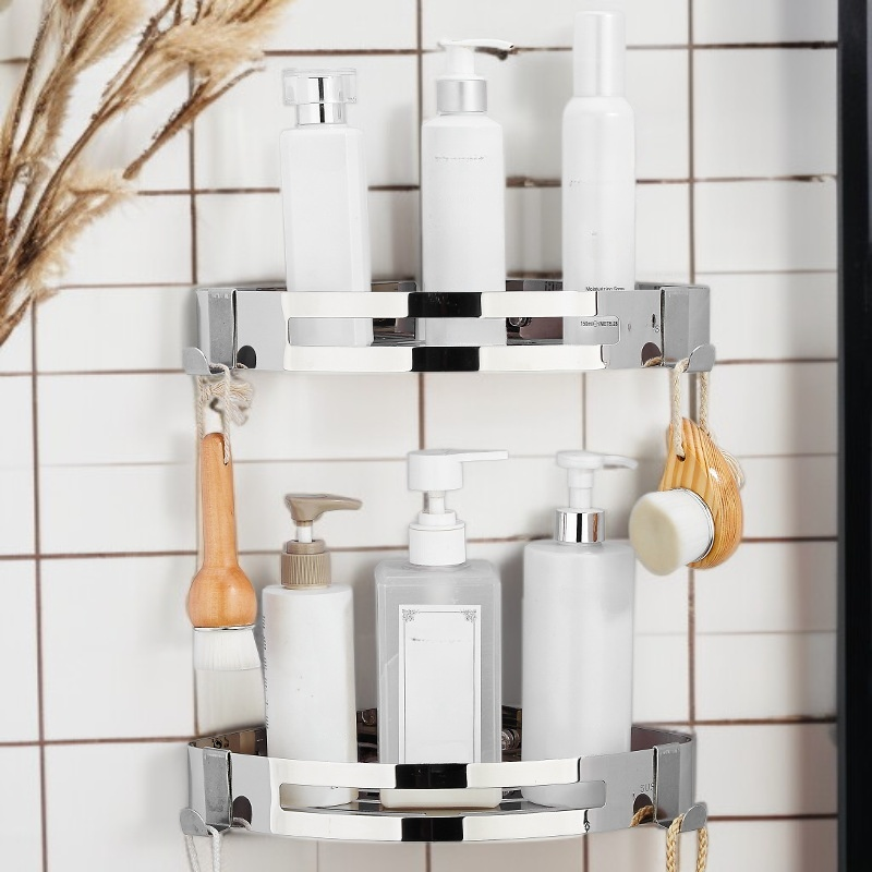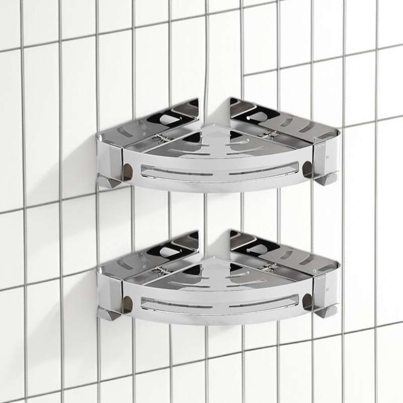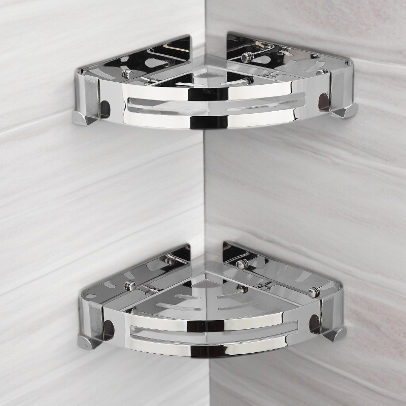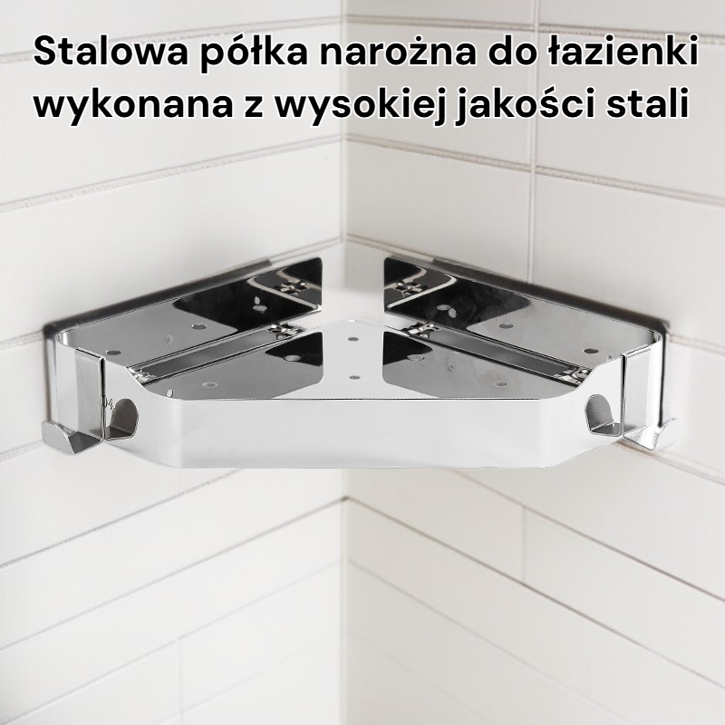 ● Stalowa półka narożna do łazienki wykonana z wysokiej jakości stali nierdzewnej 304, zapewnia trwałość i odporność na korozję przez długie lata użytkowania.