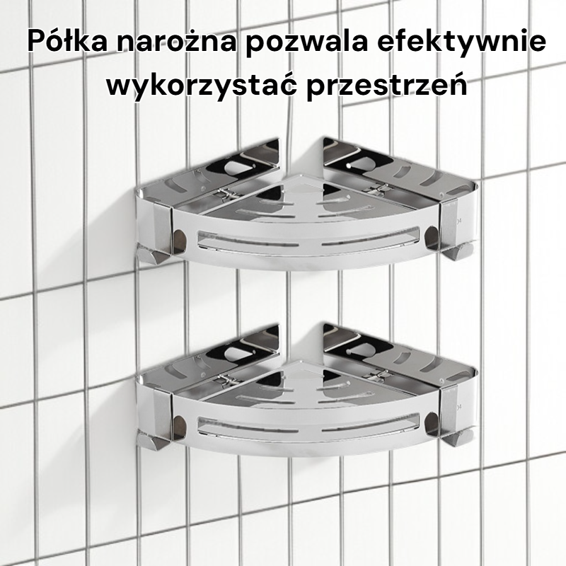 ● Półka narożna pozwala efektywnie wykorzystać przestrzeń, oferując wygodne miejsce na kosmetyki, akcesoria lub środki higieniczne.